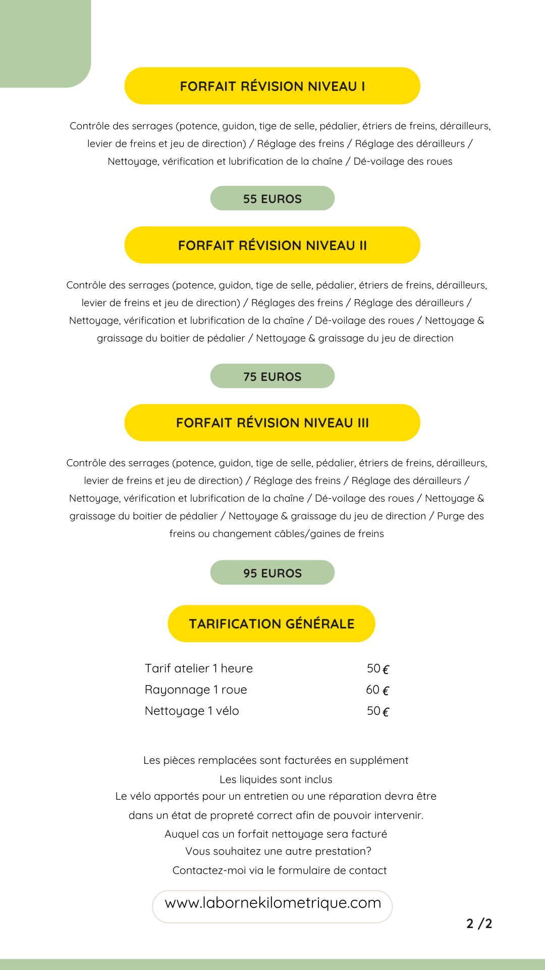 Les tarifs de l'atelier